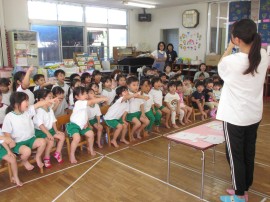 朝晩涼しくなり過ごしやすくなってきました。午前中は涼しい時間も増えてきて、ようやく園庭で青空発表会の練習を始めることが出来ました。発表会当日まで2週間となり子どもたちも張り切って練習していますよ。寒暖差の激しい時期なので体調管理にも気を付けていきたいと思います。それでは今月のお誕生日会の様子を見ていきましょう。