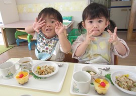 青空発表会も終わり天気の良い日には園庭で元気な子どもさんたちの声が聞こえています。今月も体調管理に気を付け元気に過ごしていきたいです。それでは10月のお誕生日会の様子を見ていきましょう。