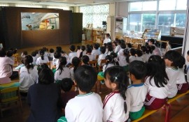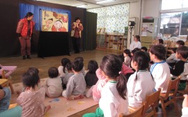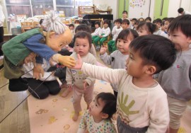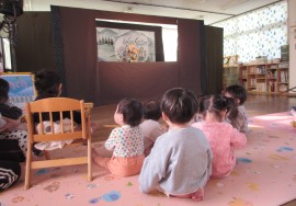 今回の演目は「かさじぞう」です。劇団の方の操る人形を子どもさんたちは集中して観ていました。来年はやなせたかし原作の「そっくりのくりのき」が上演予定だそうです。来年の巡回劇場が今から楽しみです。