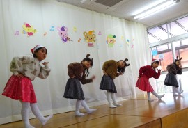 昨年末インフルエンザの流行により延期となっておりましたみどりぐみさんの生活発表会を、日本舞踊の発表会と併せて開催しました。当日は子どもさんたちが一生懸命練習した成果や、さらに成長した姿を見せてくれました。